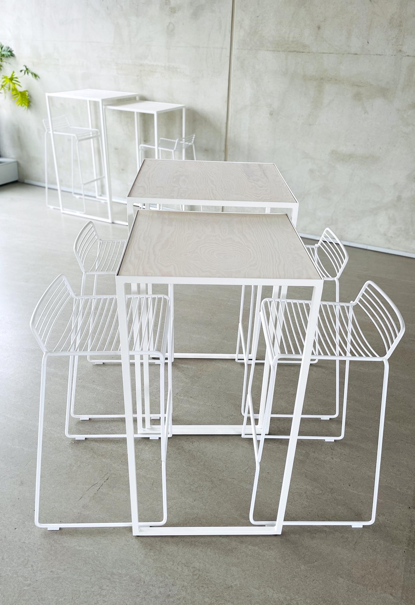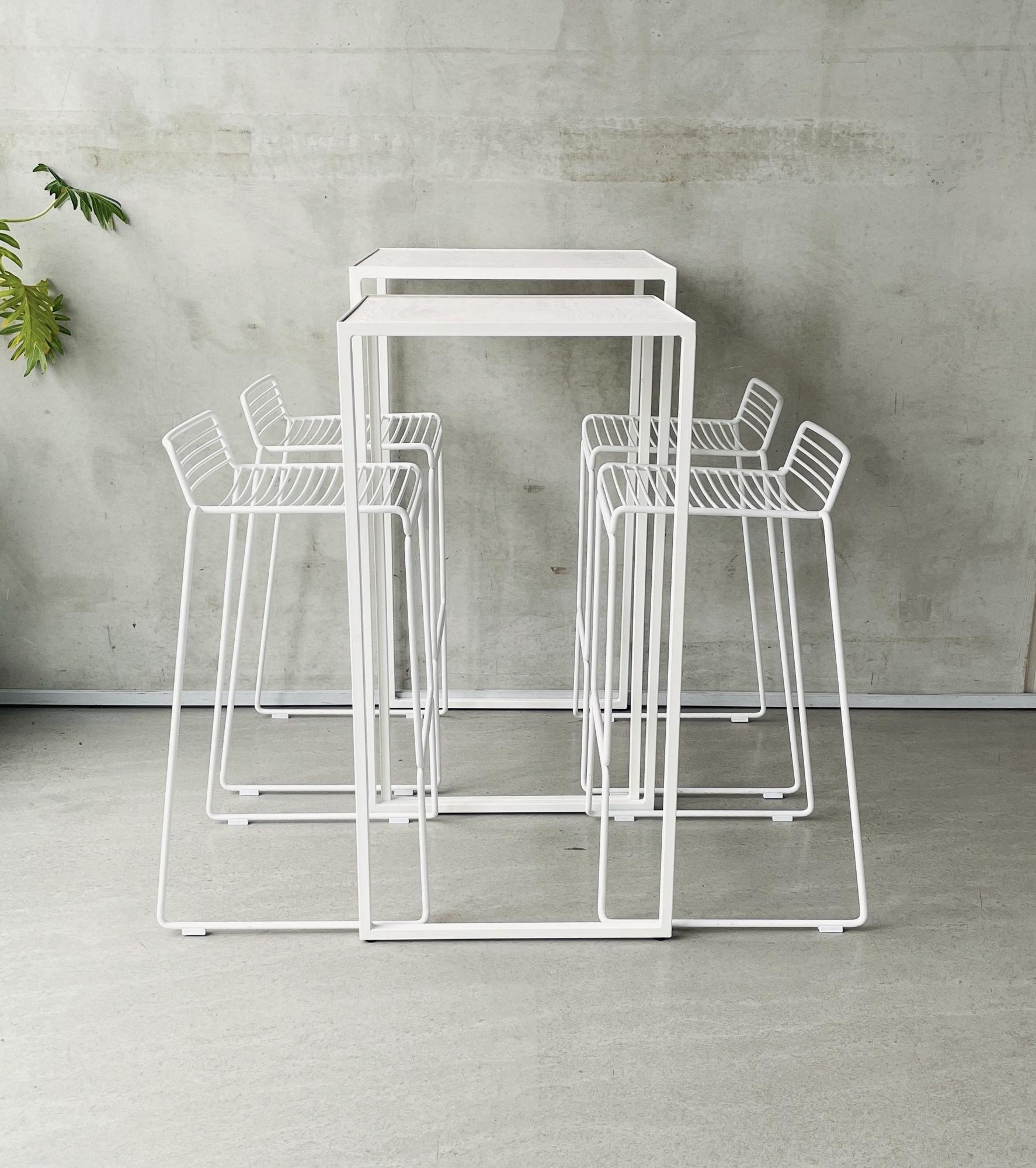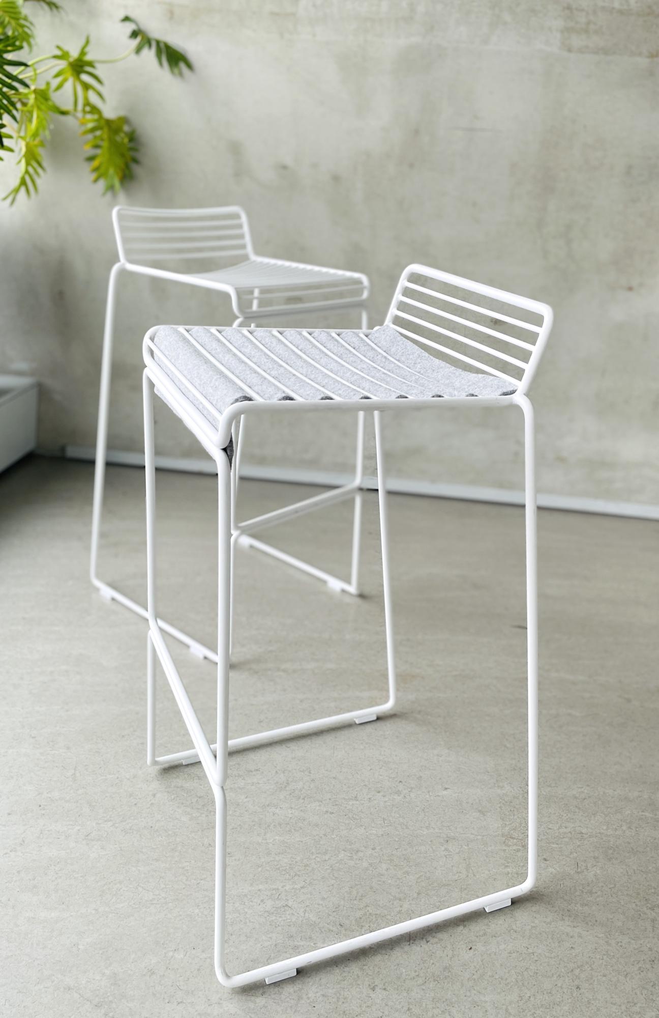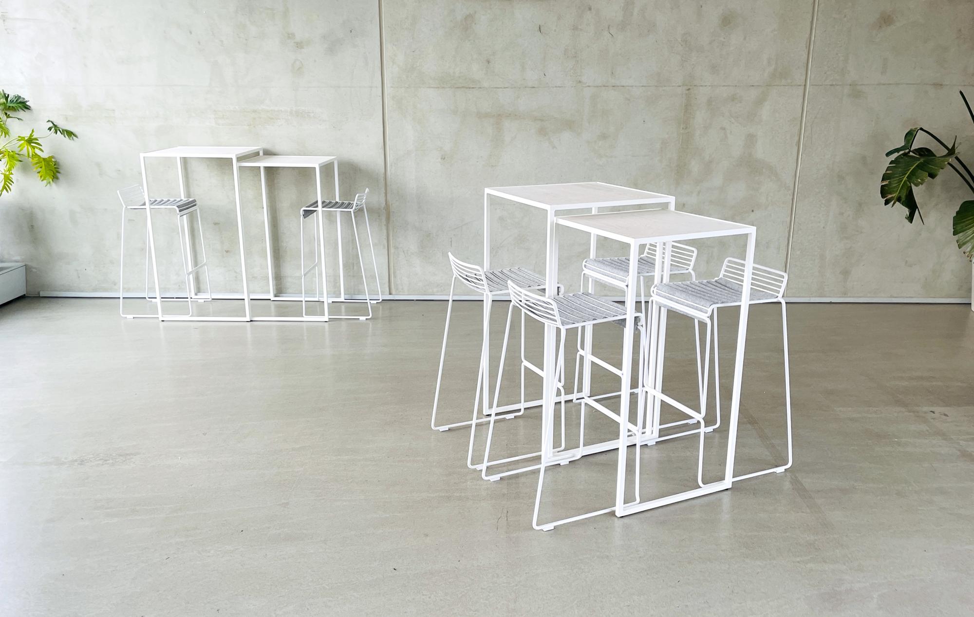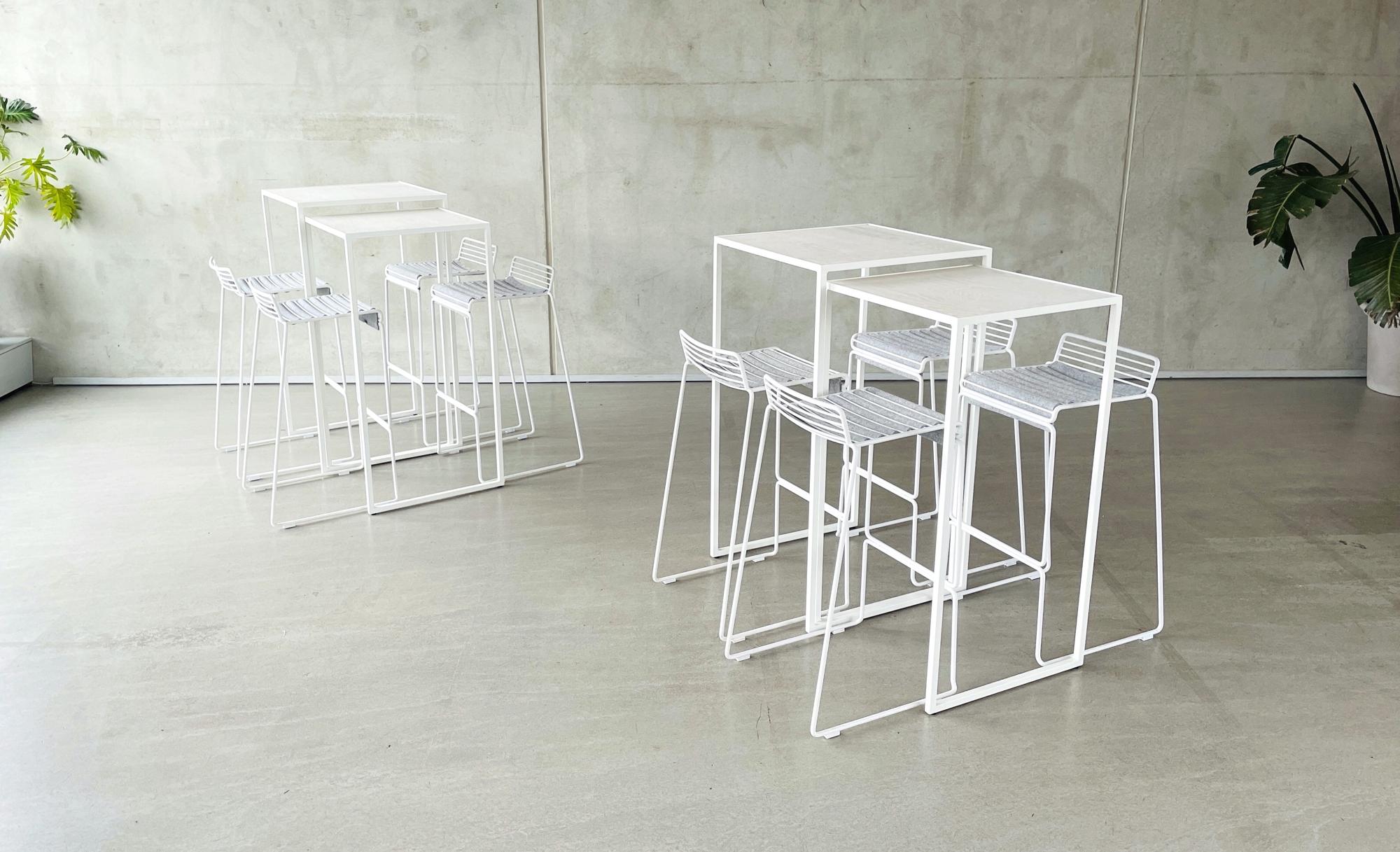 Auch Stehen kann elegant sein. Dafür empfehlen wir unseren Hochtisch DUO, der mit seinem Satztisch-Entwurf variable Aufbauformationen ermöglicht. Ergänzt um den leicht skizzenhaften Barstuhl HEE von HAY Design ergibt sich ein eleganter Minimalismus. Lediglich den komfotablen Sitzflächeneinsatz aus Schurrwollfilz haben wir uns zur Veredelung noch gegönnt.